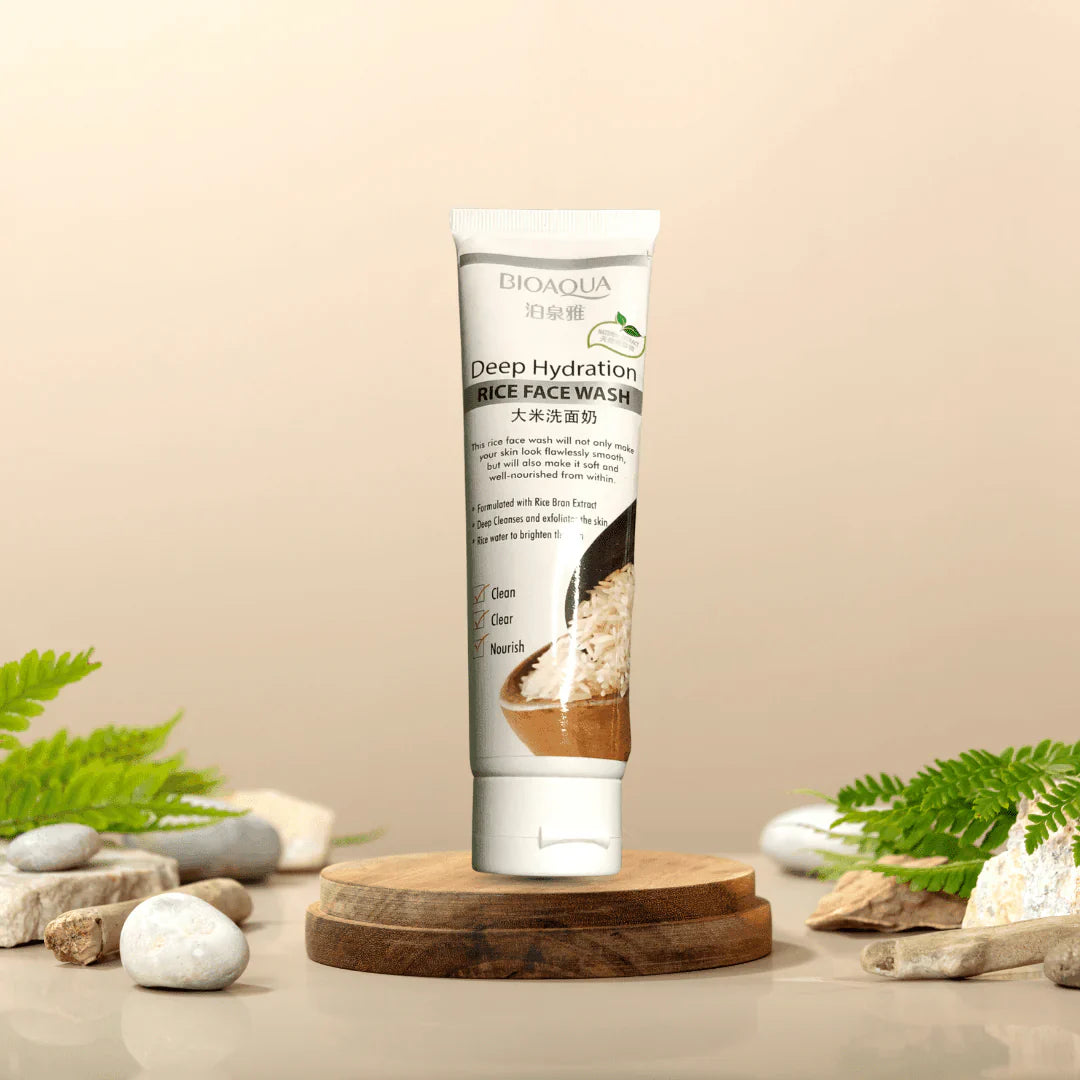 2️⃣ Take a small amount of the Rice Face Wash and lather it in your palms.