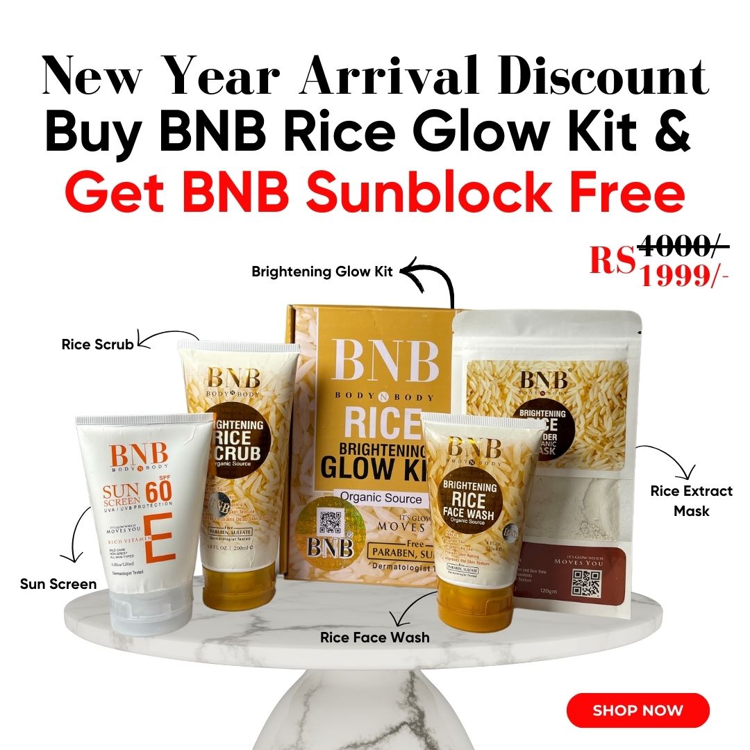 🌾 BNB Glow Rice Kit: Infused with natural rice extracts, this kit nourishes and revitalizes your skin, leaving it smooth, radiant, and glowing like never before.