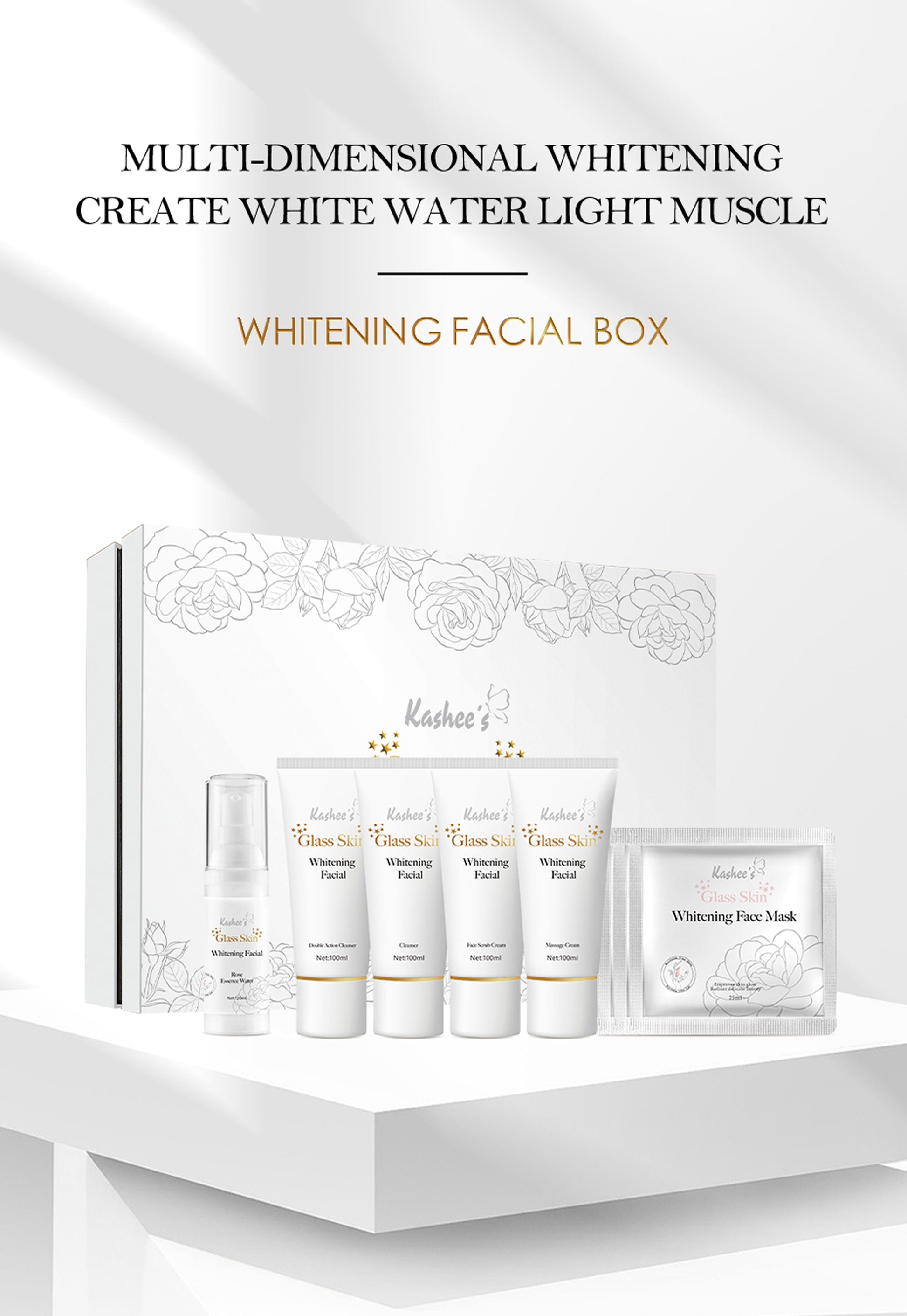 Achieve radiant, translucent "Glass Skin" with Kashee's Whitening Facial Box, a comprehensive skincare set designed to brighten, hydrate, and rejuvenate your complexion. This multi-step regimen combines advanced whitening technology with nourishing ingredients to target dullness, uneven tone, and impurities, revealing a luminous, porcelain-like glow.